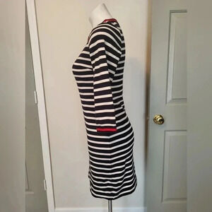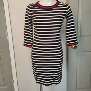 Talbots Navy and White Striped Cotton Knit Shift Dress(XS)