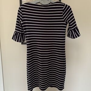 Elegant and versatile, this striped navy and white dress is perfect for any occasion. The classic design offers a timeless look.
