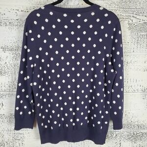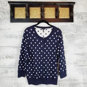 Talbots Navy with White Polka Dots Knit Sweater Button Front Cardigan