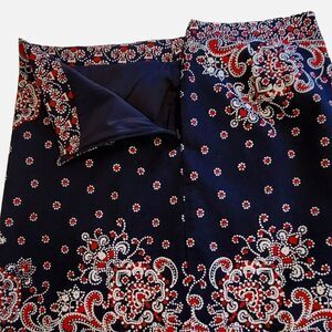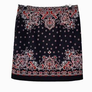 Talbots Navy Blue & Red Polka-dot Paisley Patterned Side Zip Pencil Skirt Size 8