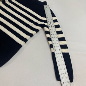 Talbots Navy Blue White Shaker Stitch Stripe Sweater Size Medium