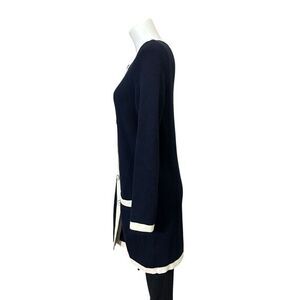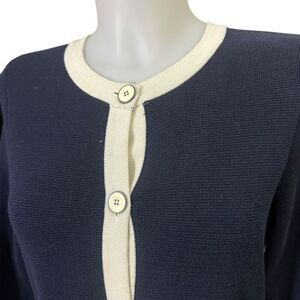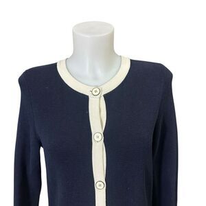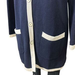 Talbots Navy Blue White Trim Cotton Blend Mid Length Button Down Cardigan Small