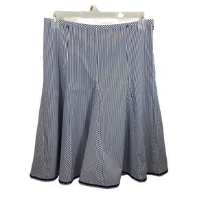 Talbots Navy Blue and White Striped Midi A Line Skirt Size 8