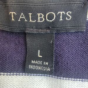 Talbots Navy/White Cotton Striped Knit Moto Jacket Zip Nautical Travel Sz L
