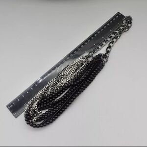 Talbots Necklace Modern Black Beaded Silver Tone Gunmetal Layered Chains 24 Inch