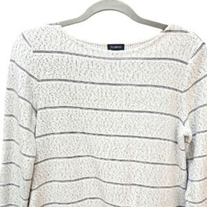 Talbots Neutral Knit Boat Neck Blouse Old Money 3/4 sleeve Fringe Hem Size S