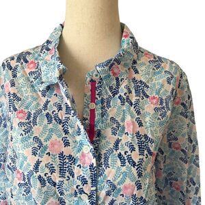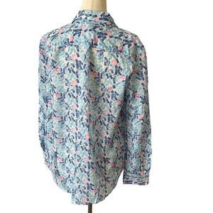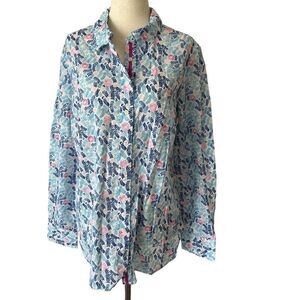Talbots New Blue and Pink Cotton Floral Long Sleeve Button Front Blouse M