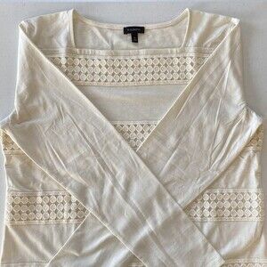 Talbots Embroidered Crochet Cotton Modal Stretch NWOT Top Shirt Long Comfy Soft Tee