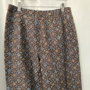 Talbots New Silk/Linen Brown Blue Print Spring Pants Size 10