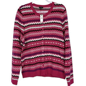 Talbots New Women’s XL Button Up Lambswool Blend Print Cardigan