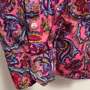 Talbots non-iron shirt in misses size 14, long sleeve. Measurements are approximately length 25.50 inches, sleeves 24 inches, and chest 20 inches.