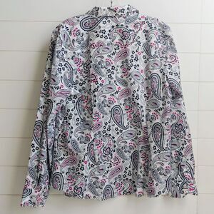 Talbots Non-Iron Button Up Shirt Women's Size 16 Paisley Print 3/4 Sleeves NWOT