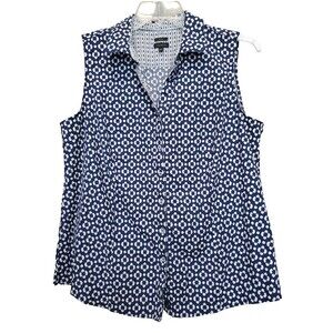 This is a Talbots Non-Iron Cotton Blend Geo Star Print Sleeveless Button-Up Shirt Size 16
