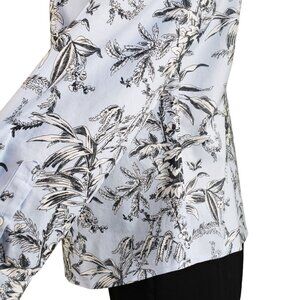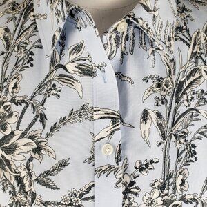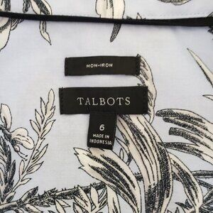 Talbots Non-Iron Fitted Cotton Toile Print Button Shirt Size 6 Light Blue Black