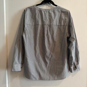 Talbots Non-Iron Striped Shirt Split Neck Pullover Long Sleeve Sz XP Women's