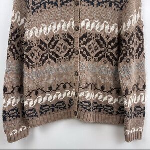 Talbots Nordic Fair Isle Chunky Knit Cotton Grandma Grandpa Kawaii Cardigan LP