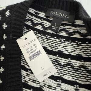 Talbots Nordic Knit Sweater Women's Large Black White Fair Isle Winter Holidays