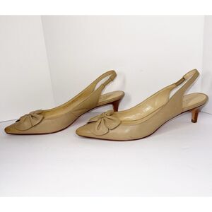 Talbots Nude Leather Kitten Heels Sling Back Pointed Toe Bow Pump Mule 8.5 B
