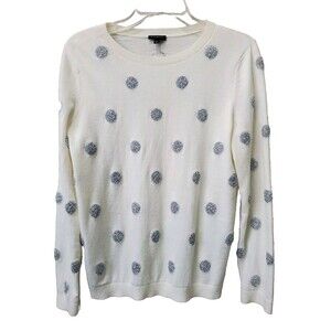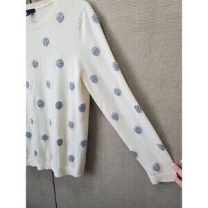 This is a Talbots Off-White Lamb's Wool Blend Silver Tinsel Dot Pullover Sweater Size Medium
