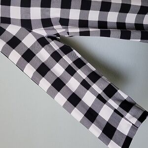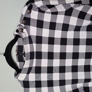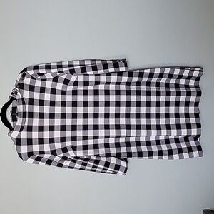 Black and white gingham / plaid pattern. Hidden zipper closure in the back. 3 button detail at the shoulder. Same button detail behind the arms. 3/4 length sleeves. Does minimally stretch. Great condition. workplace, career, church, modest, elevate, statement, bold, dark academia, classy, professional, business, fall, autumn, mod, preppy