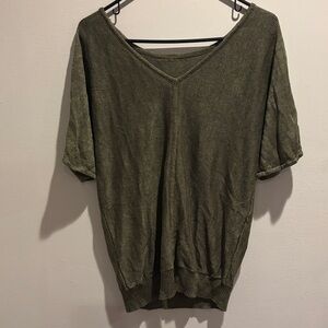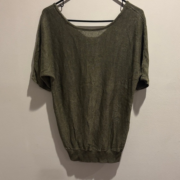 Chic olive green blouse with a relaxed fit. Perfect for versatile styling. PTP: 25 inches Length 27 inches 100% linen