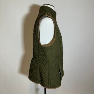 Talbots Olive Green Quilted Puffer Vest Faux Leather Trim Womens Size Large L