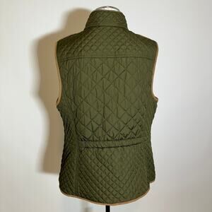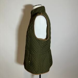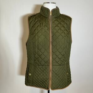 Talbots Olive Green Quilted Puffer Vest Faux Leather Trim