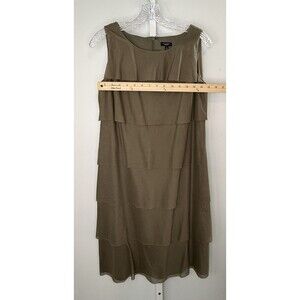 Talbots Olive Green Tiered Cotton Dress 6 Sleeveless Lined Classic Midi