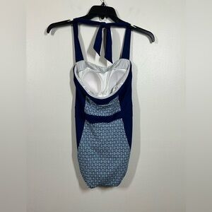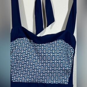 Talbots One Piece Swimsuit Halter Tie Built In Bra Spandex NWT Size 6 Blue/White