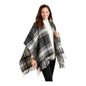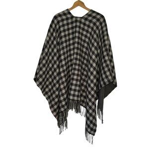 Talbots One Size Black and White Reversible Woven Plaid Ruana
