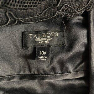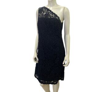 Talbots One-Shoulder Black Lace Dress With Sheer Floral Size 10P