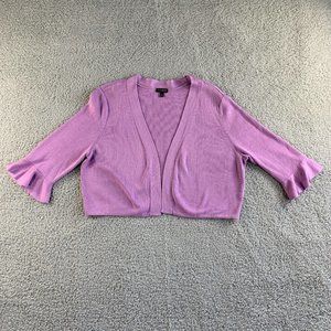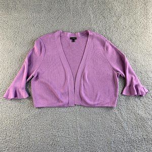 Talbots Open Cardigan Crop Sweater Womens Large Modal Ruffle Sleeve Purple NEW