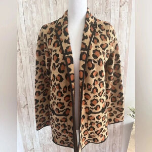 Talbots Open Front Animal Print Leopard Cardigan