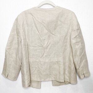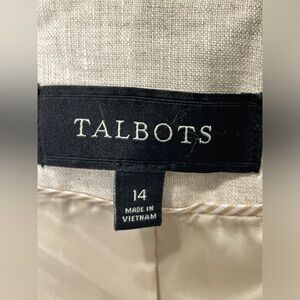 Talbots Open Front Beige Linen Lined Blazer with Pockets