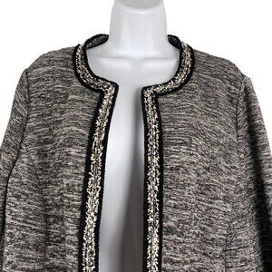 Talbots Open Front Jacket Black White Mix Cotton Blend Long Sleeve Women's XL