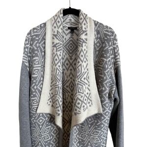 Talbots Open Front Cardigan Sweater White Gray Aztec Print Size M