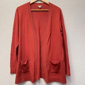 Talbots Open Front Long Sleeve Cardigan Sweater Medium Burnt Orange Fall