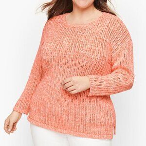 Talbots Open Stitch Sweater Space Dyed Sunlit Coral White