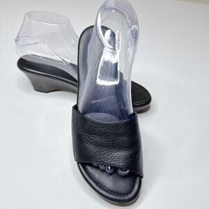 Talbots Open-Toe Wedge 2" Heels Size 8AA Black Textured Leather Slip-on Sandal