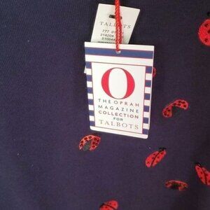 Talbots Oprah's Magazine Collection Sz XS Navy Blue Embroidered Lady Bug Sweater