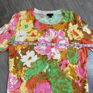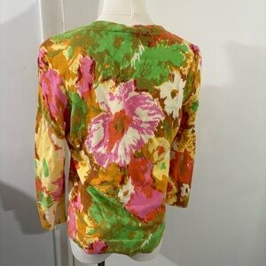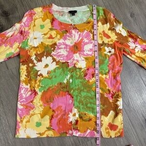 Talbots Orange Pink Green Floral Cardigan sweater 3/4 sleeve Preppy Classic Sz S