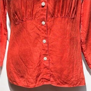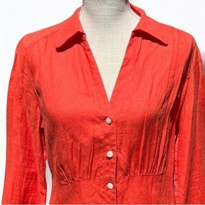 🌻Talbots Orange Pure Irish Linen Button Down Blouse Size 10