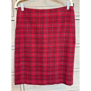 Talbots Outlet | Red/Gray Wool Blend Plaid Pencil Skirt | 8