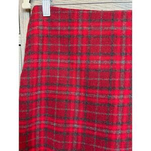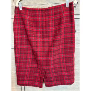 This Talbots Outlet pencil skirt is in very good condition and features a stylish red and gray plaid pattern. Made from a comfortable wool blend, this skirt is perfect for adding a touch of sophistication to your wardrobe. It has no flaws or defects and is ready to wear. A classic and versatile piece, it can be dressed up or down for any occasion. The size is 8.