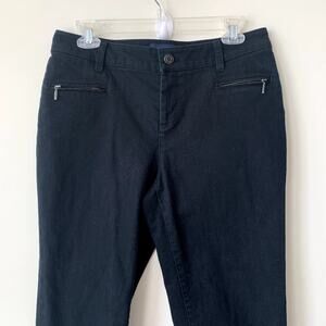 Talbots Outlet Signature Jeans Size 8 Petite Black Denim Moto Zipper Mid Rise