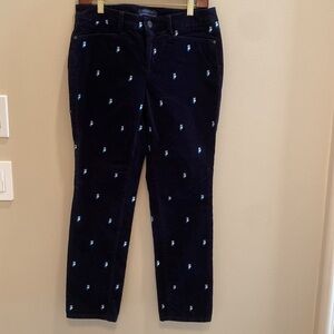 Talbots Black Pin Whale Cords Simply Flattering 5 Pocket Corduroy Pants Blue White Embroidered All OverOwls Size 8P EUC *no issues Waist 15” Rise 9.5” Inseam 28.5” IKB 14