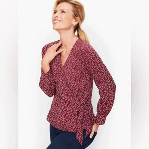 Talbots POET SLEEVE WRAP TOP - CURLY ROSES medium petite