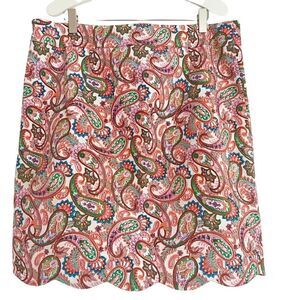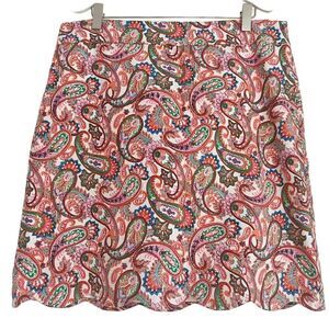 Talbots Paisley A Line Skirt w/ Scallop Hem Orange Pink Blue Green
