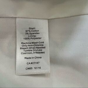Soft and lightweight cotton and spandex has a little stretch. Side zip. Lined. Great preowned condition- no flaws or signs of wear- like new.