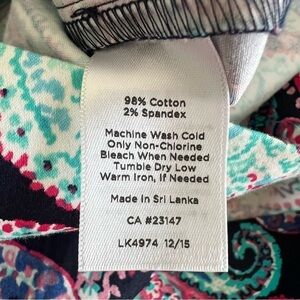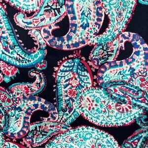 Talbots Paisley Cotton Blend Skirt Blue Knee Length Back Zip Stretch Sz 14 - in excellent used condition. When laid flat, waist of skirt measures approximately 17 inches across and length is 23.5 inches long.